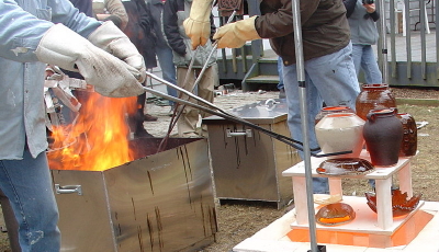 Clay: Use clay that is suitable for Raku (e.g., with grog). Here at Lakeside Pottery we used Baldwin 192 made by Standard and can be purchased for NY/NJ Ceramic Supply (800-7CERAMIC - ext 202). Bisqued pots: Students will bring their own bisqued pots. To prevent possible cracking, pots need to be well made (uniform thickness) and avoid flat forms. Size Requirements: Pots should be no wider than 8" and no taller than 14". Number of pots: A maximum of 8 pieces per student - if time permits, will fire extras. Safety is where most attention is required. |