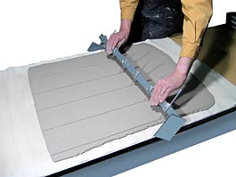 Alternatively, you can roll the slabs directly onto a board and keep them there, flat, until they can be slid off. This works with slab rollers like the Brent where the clay stays stationary and the roller moves across it.