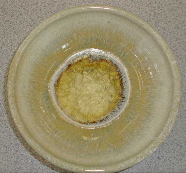 Melted glass, however, does not chemically bond with the ceramic. Instead, it sits on top of the glaze or bisque surface. When it cools, it forms larger, deeper, and more open cracks, which can easily trap food particles, moisture, and bacteria. These cracks are not sealed or protected and remain porous and exposed.