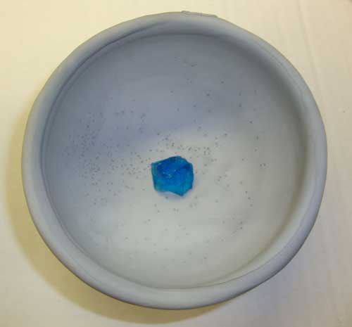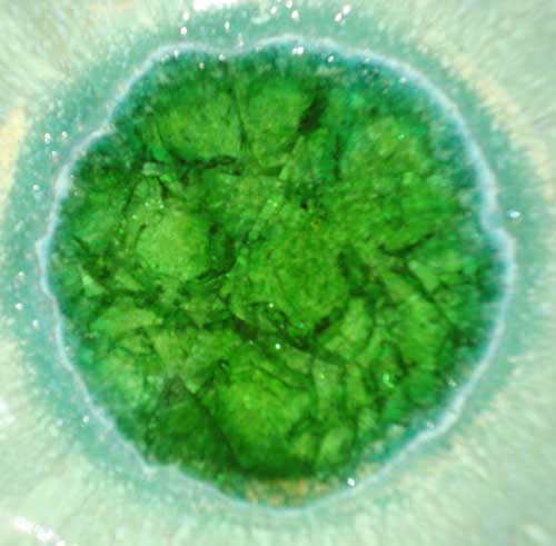 When working with pottery, it's helpful to think of glass as another type of glaze, because that's essentially how it behaves in the kiln. This means that each glass and glaze combination can produce different visual and chemical results.