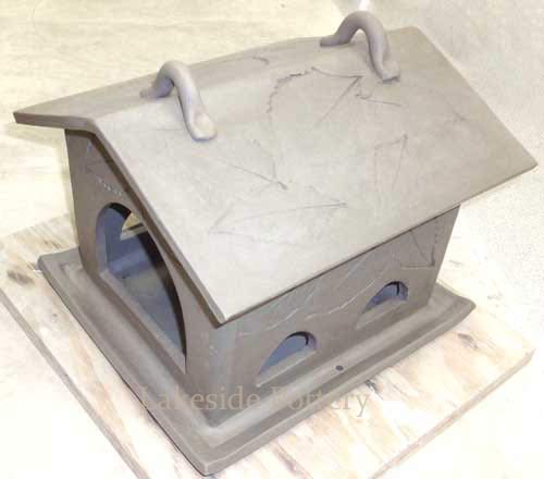 Lakeside Pottery makes ceramic / clay bird houses, bird feeders, bird baths and garden ceramic specialties (e.g., Green-man). We can customize to any design, shape or color. Please contact us if interested. The benefits of our ceramic birdhouse, feeders or bath are: Hand made art, each design is unique, easy cleaning, will last much longer than wood or metal. |