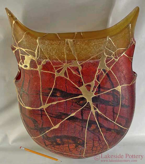 Before and After Kintsugi - Large Kintsugi Raku vase before and after repair