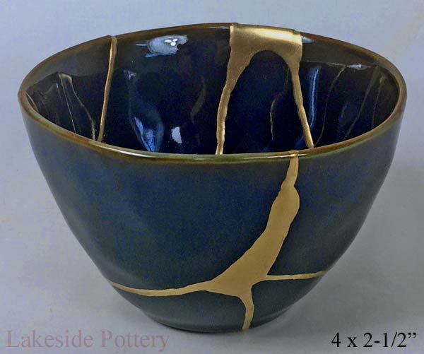 Cobalt blue gold Kintsugi bowl