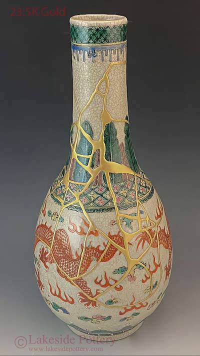 17 Before and After Kintsugi - 23.5K gold Kintsugi vase made for Prince Lorenzo de Medici, Italy ..