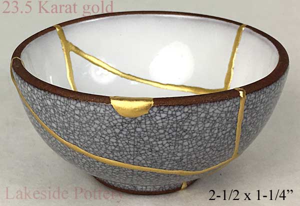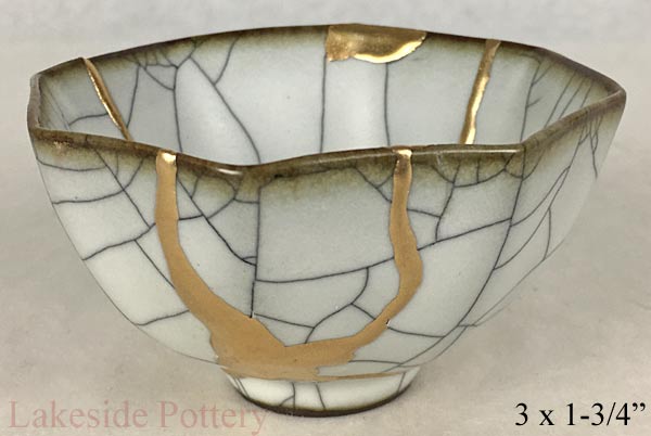 Crackled glaze Japaneses gold Kintsugi bowl