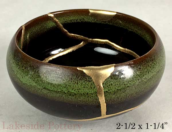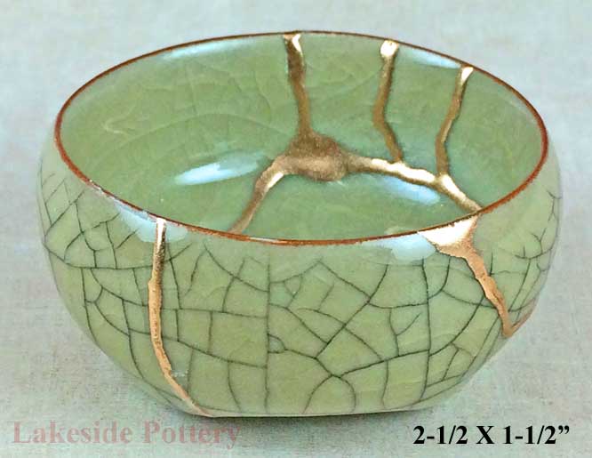 Japanese Celadon gold Kintsugi bowl