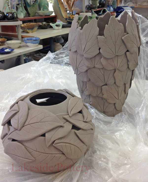 Hand built pitchers with leaves design