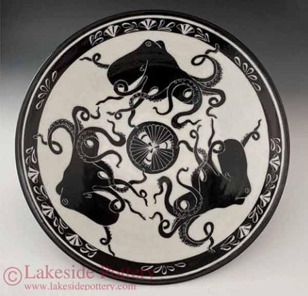 Sgraffito octopus bowl