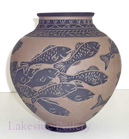 Fish Sgraffito technique, large vase
