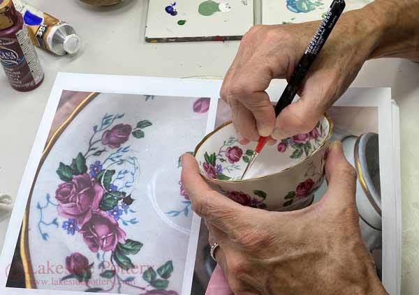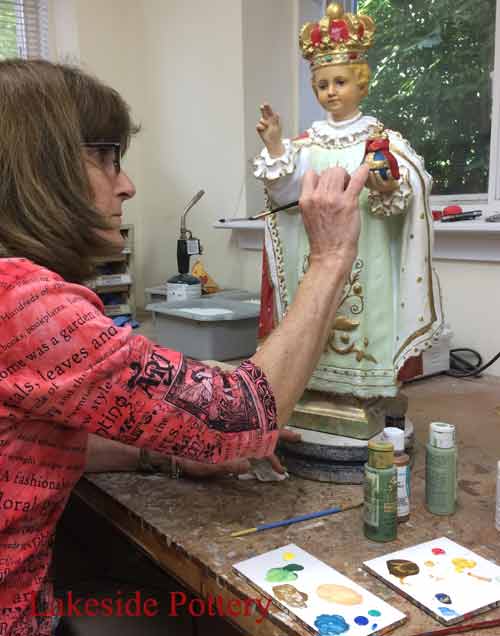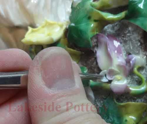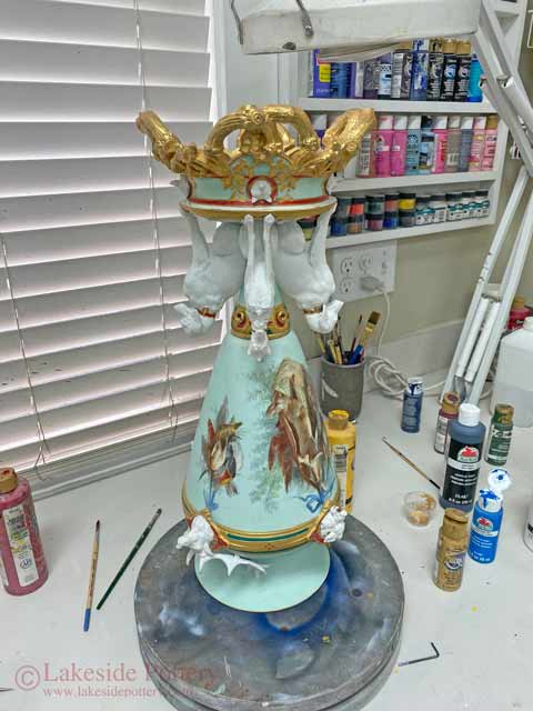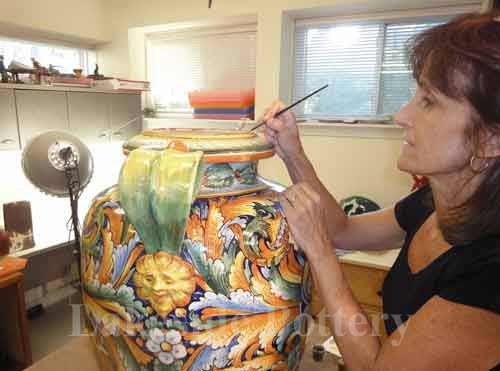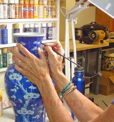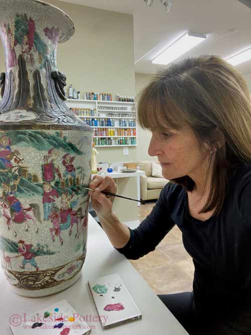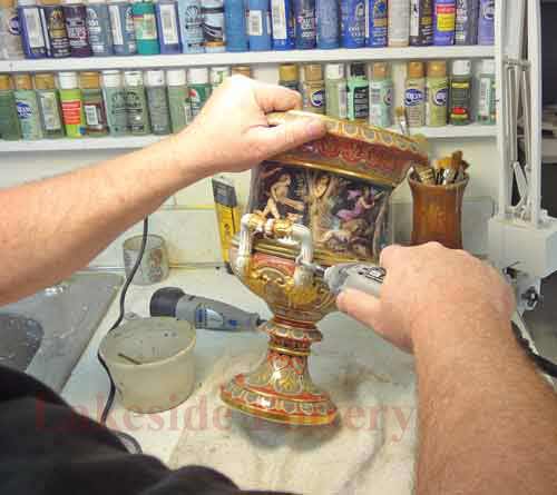 Painting the repaired area of antique Italian vase