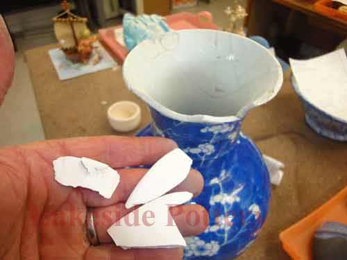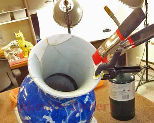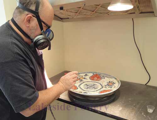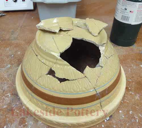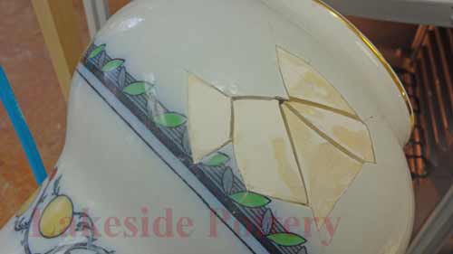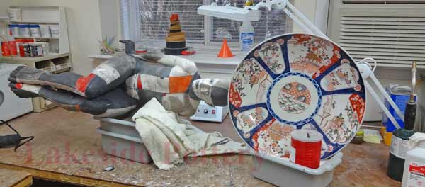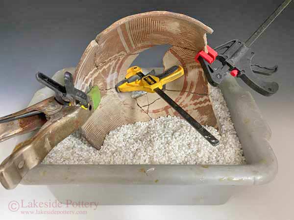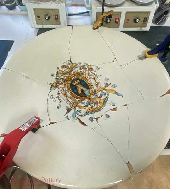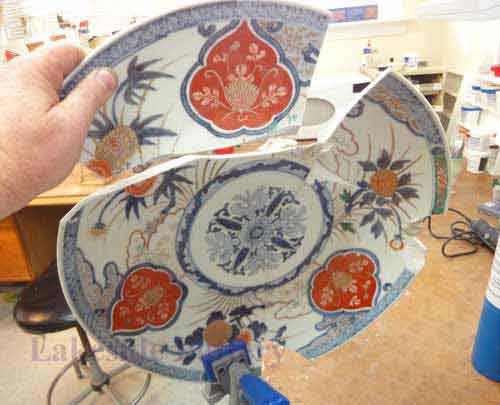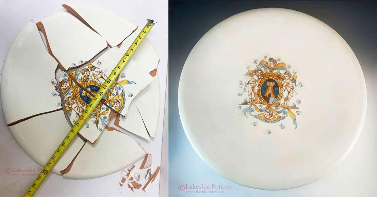 Mending a large ceramic platter