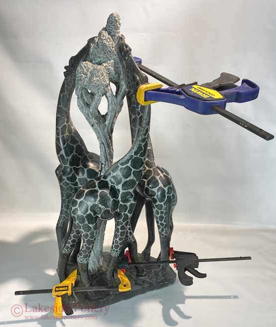 Shona stone giraffe sculpture with adhesive curing