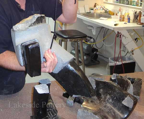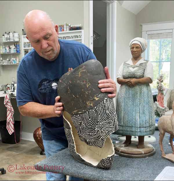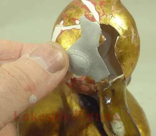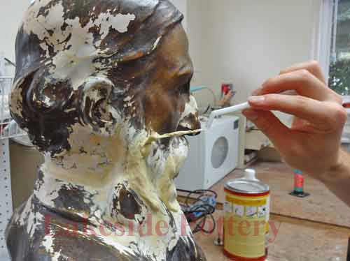 Large Raku statue repair in process