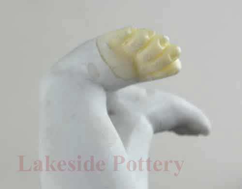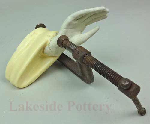 Sculpted new hand made of fired clay