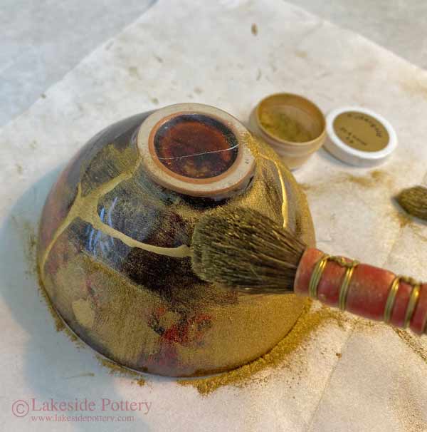 23.5K gold powder applied on a Kintsugi repaired bowl