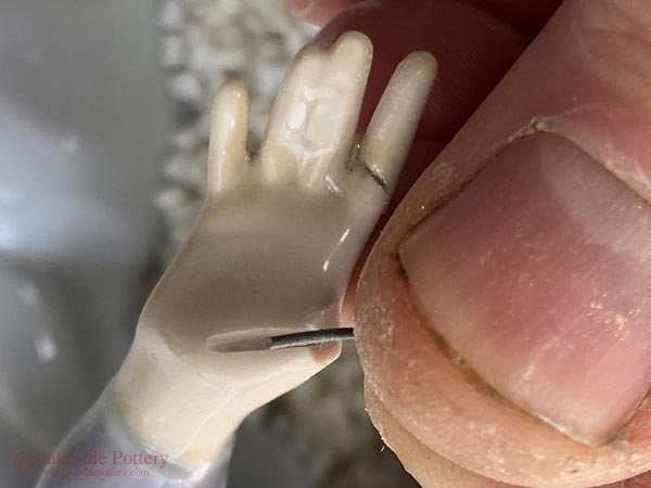 Mending sculpted thumb over a metal pin