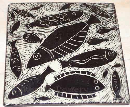 Finished Sgraffito tiles: