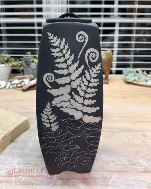 Sgraffito fern design vase
