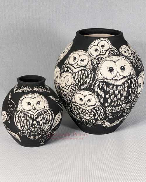 Sgraffito owl vases
