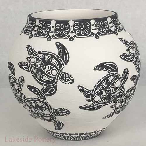 Sgraffito turtles vase