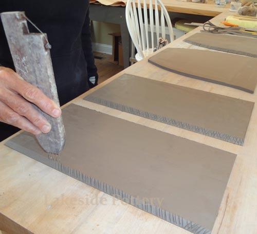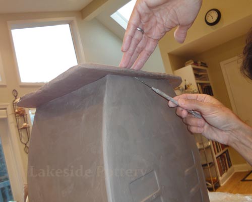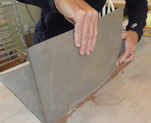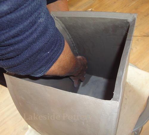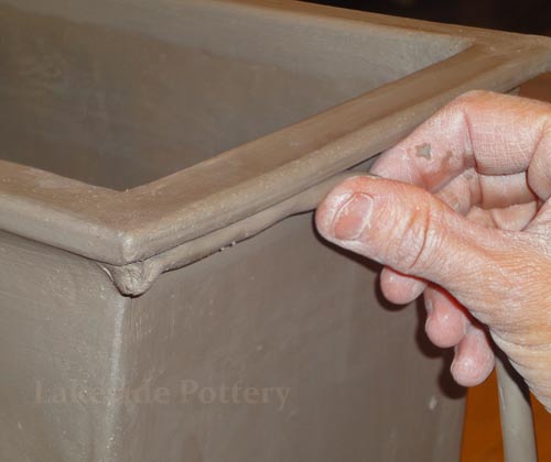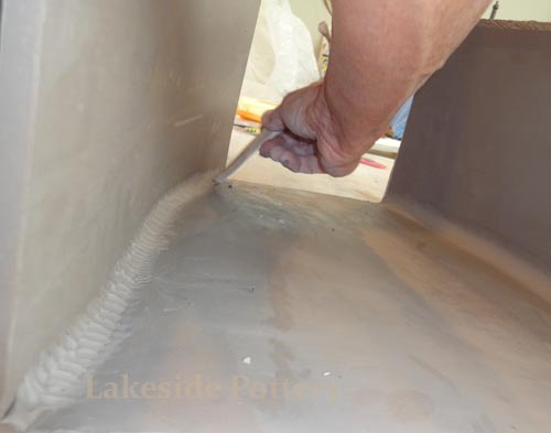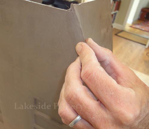 All connection points are required to be mitered at 45 degrees, scored and applied with magic Water (see link for magic Water recipe). Using slip only may not be good enough for large forms and the seam might separate during drying or firing.