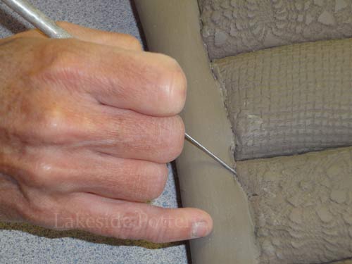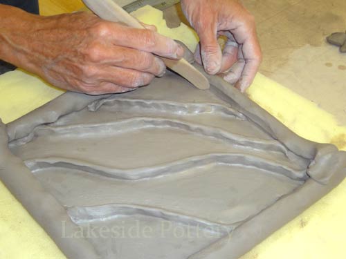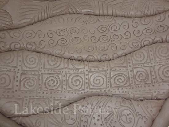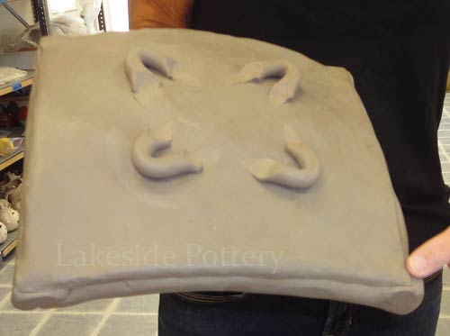 Ceramic clay quilt art can be designed and used for wall mount display or designed as a functional serving platter or tray. In either case, it has the appearance of soft quilted fabric and through our experience, is a great centerpiece that generates conversations and wonder. The pattern can be designed to mean something for each customer (e.g., initials, hobby, company logo, family crest, favorite sports, etc.). We can design it to order and glaze to numerous color options. If the order is for hanging art, we build in provisions for hanging or can shape it to a bowl, platter or a tray with or without feet. The tutorial for this hand building pottery lesson is below and will walk you through the process of "Quilting With Clay" step by step.