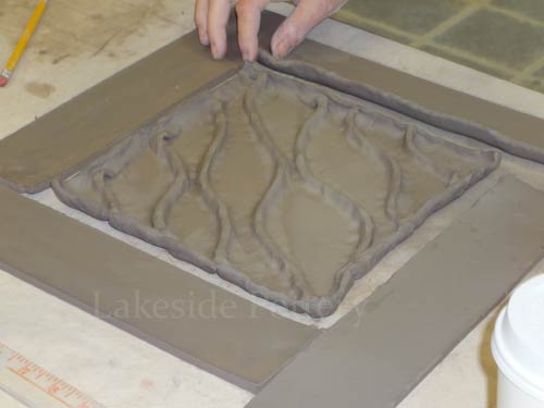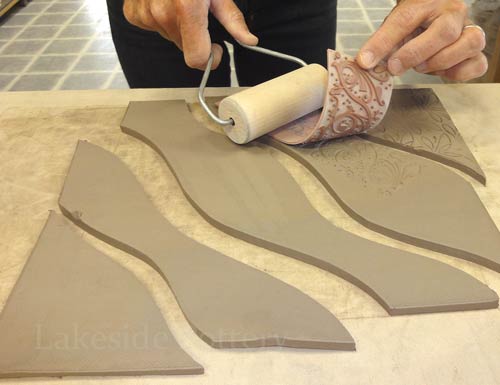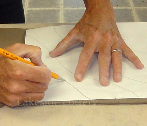 Design options are infinite and can be placed on a thin paper like "newsprint". Prepare a slab slightly thinner that the typical 1/4" (see Making Tiles tutorial).