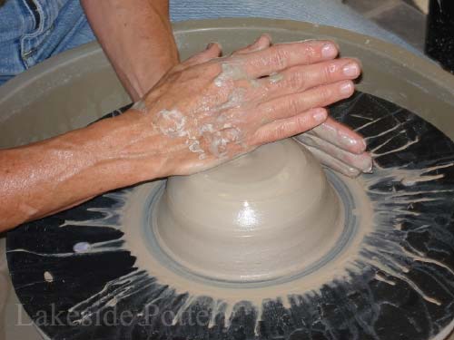 The tutorial below will guide you step by step illustrating how to use your body properly throwing a pot on the wheel. Always start small. This demo is with a 3 lbs clay and starting with 2 lbs will be a wise choice if you are a beginner.