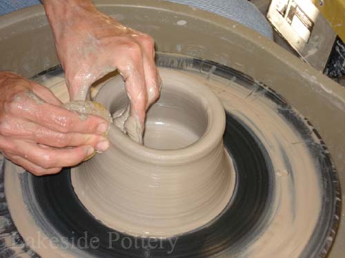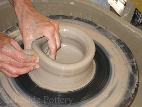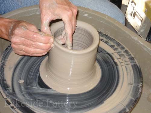 37. Shaping - Push inside of cylinder out while outside hand gently supports clay