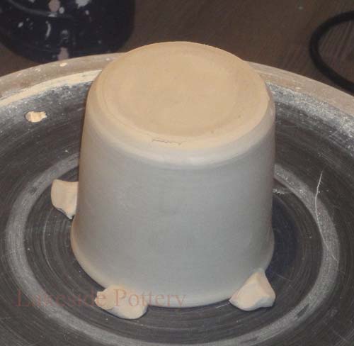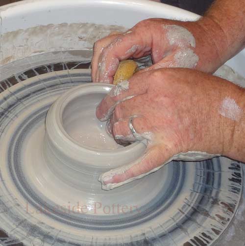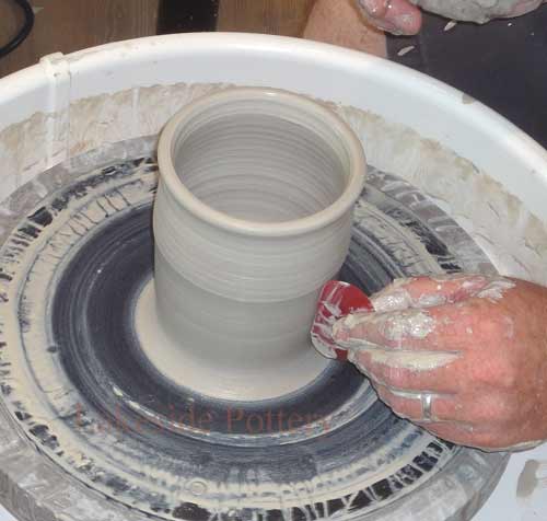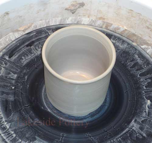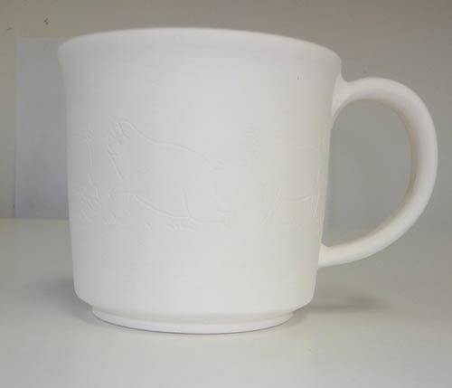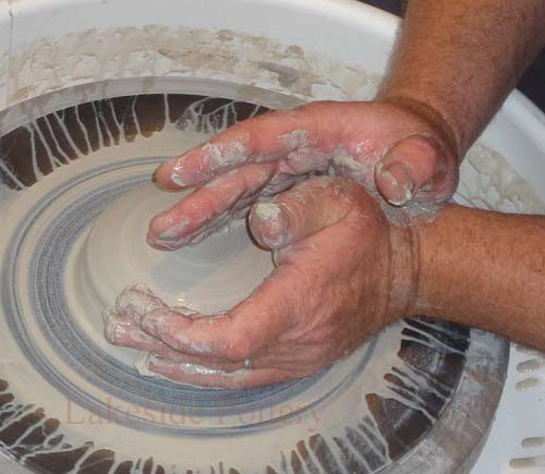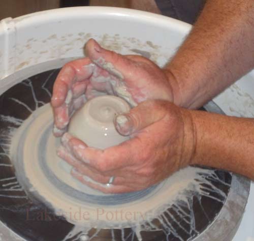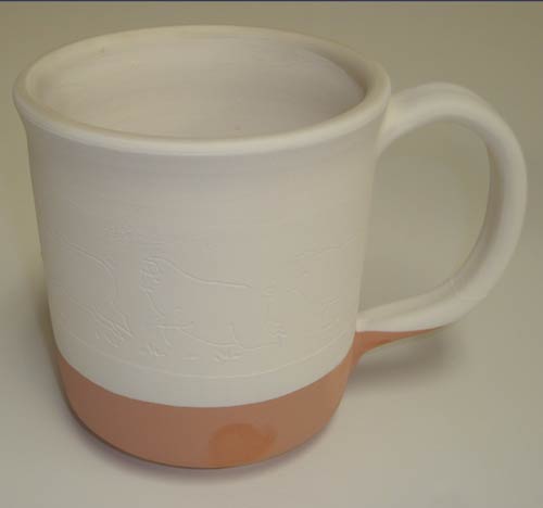 | Below is a step by step illustration of throwing, trimming, handle pulling and glazing a custom made mug to a very specific customer requirements spec. The efforts starts with understanding what the customer would like to achieve and how he / she is planning to use it. The finished product is white stoneware and is functional and durable (microwave oven, oven, dishwasher). Because it is high fired, one must remember to factor in the shrinkage. In our case, the clay shrinks 13% through the full process of drying, bisque firing (cone 06) and glaze firing (cone 6). |