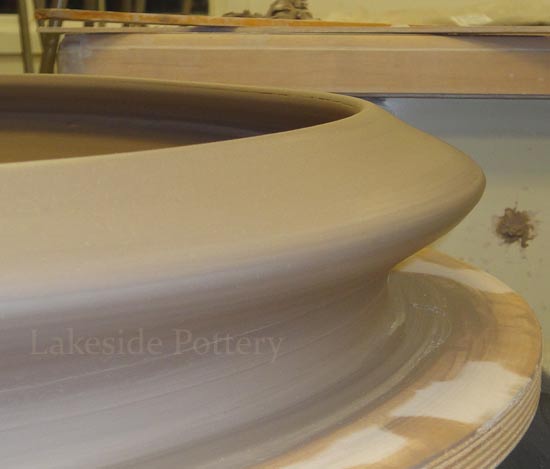 3) Cover the whole pot loosely for 1-2 weeks and make sure the rim does not dry first. If the rim drys first on such large platter, cracking at the rim's edge is almost certain. Drying Tip: Flip the plastic cover once a day while drying. The moisture that accumulates on the plastic surface will be facing up after flipping, thus, removing water a bit faster from the enclosed large pot.