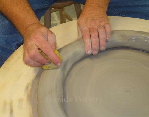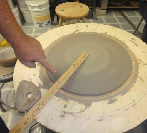 7) One inch thickness for the bottom is used to be able and trim 1/2 foot when leather hard. Verify with a pin tool for the correct thickness and test in a few spots to ensure consistency.