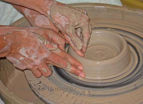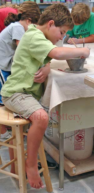 At Lakeside Pottery, we all teach ceramics with the philosophy that the process is more important than the product. I place emphasis on the discovery and joy of creating, however, there is an excitement for children as they make their mug or pencil holder and announce that it’s for their grandmother’s coffee or for their dad’s desk. The functional and durable nature of the finished stoneware clay gives children a feeling of significance and pride. I will often give the students the option of putting glass chips in the bottom of their bowls or plates as part of the glazing process. When I explain that though it is beautiful, it might make the piece not safe for food, many children say no to the glass because it is important for their bowl to be used as a center piece at their table. All forms of art are important for children to experience, yet it does seem that the long-lasting nature of the children’s finished clay piece adds a special value for them. We often ask parents what artistic creation their mother has kept on her shelf for years, and they all answer that it is the pottery they made in grade school.