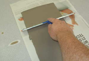 3) Smooth the surface of the slab with a window wipe or a metal pottery kidney.