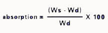 Clay absorption rate of 3% or lower is required for tile to withstand frost. The absorption test typically used is established by the American Society for Testing and Materials. First, a fired tile is weighed dry (Wd), then soaked for 24 hours in cold water. Immediately after being dried with a towel, the tile is weighed again (Ws). The absorption rate is then calculated from the two measurements using the formula below: