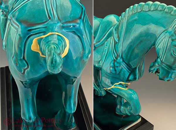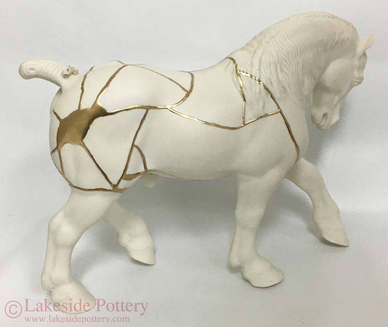 Kintsugi repaired horse figure