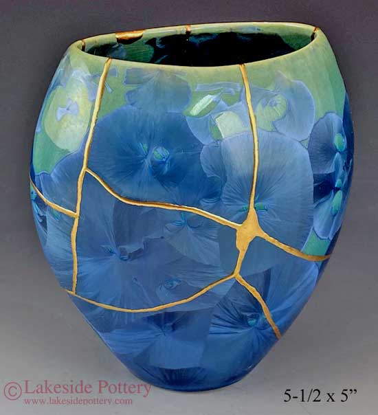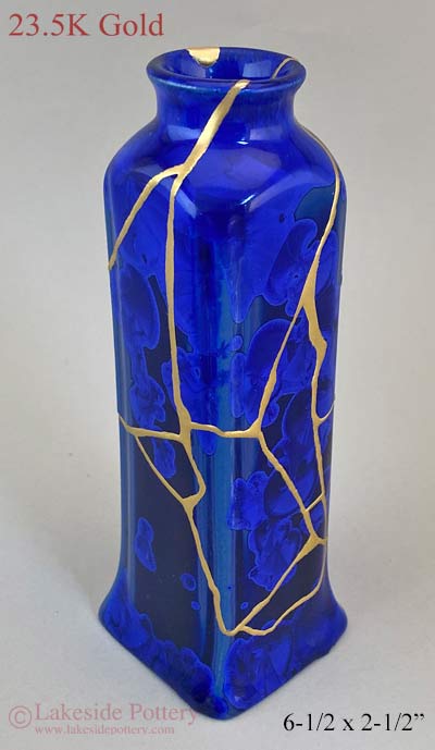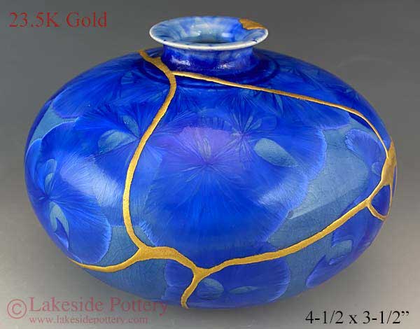 Blue Crystalline gold Kintsugi vase