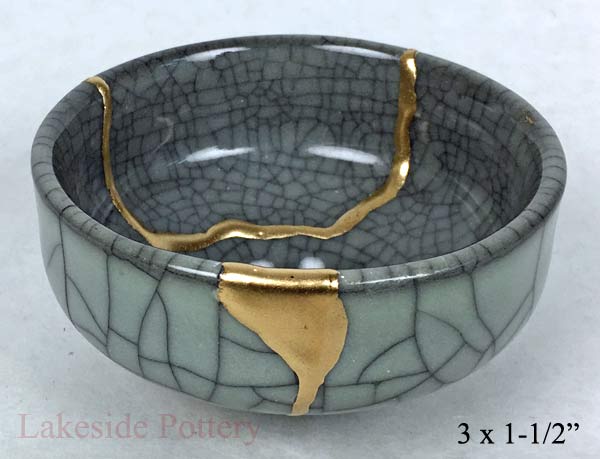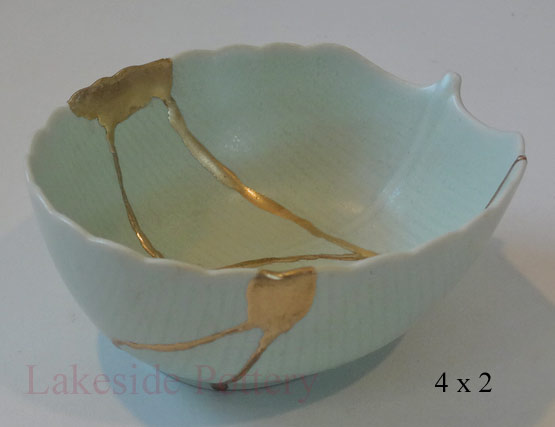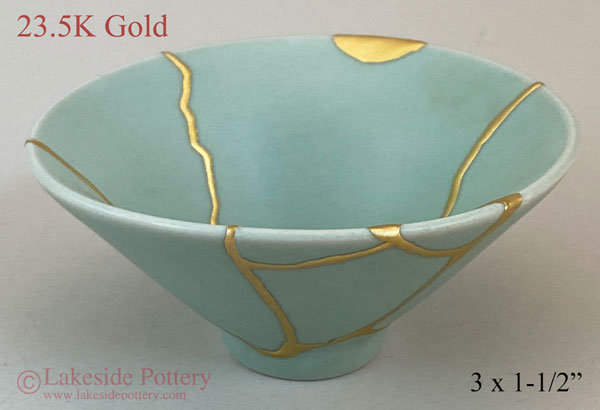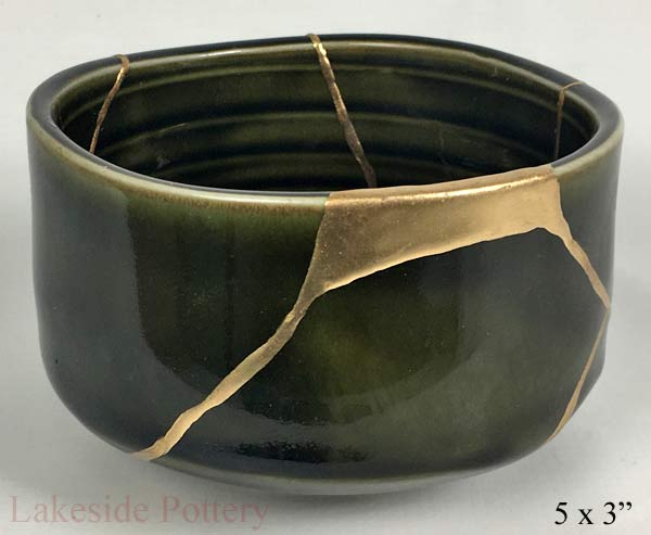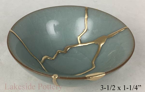 Japanese Celadon gold Kintsugi bowl