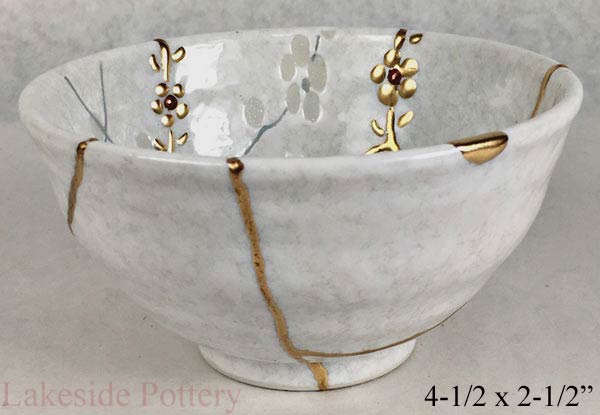 Crackled glaze Japaneses gold Kintsugi bowl