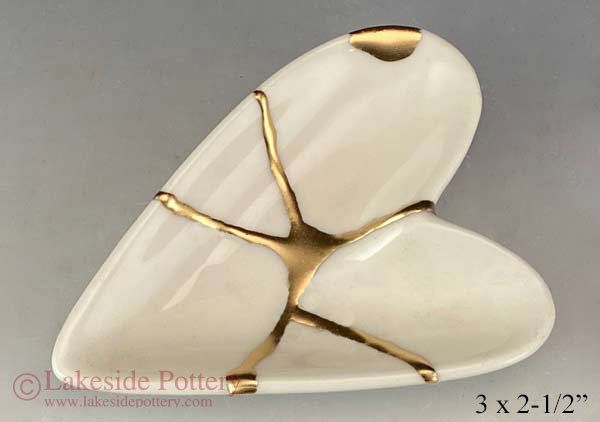 Gold Kintsugi heart ring dish
