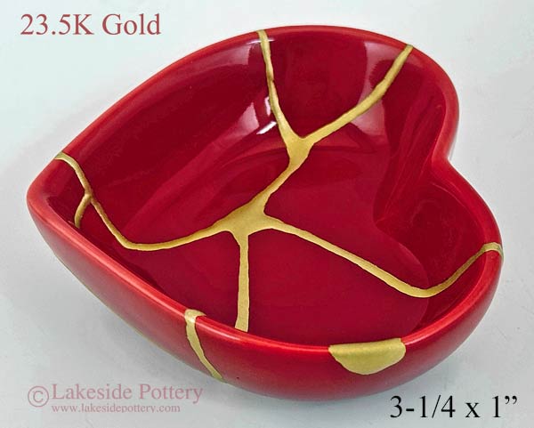Red heart gold Kintsugi dish
