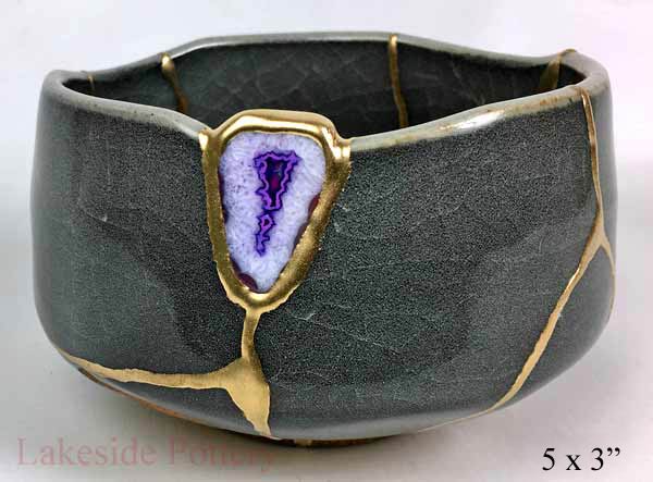 Kintsugi bowl with Agate gemstone