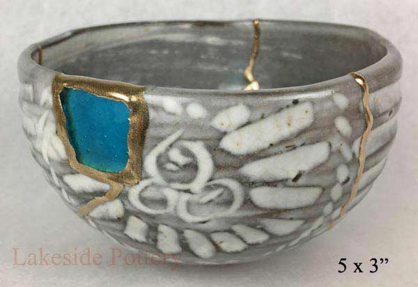 Light blue / gray gold Kintsugi bowl