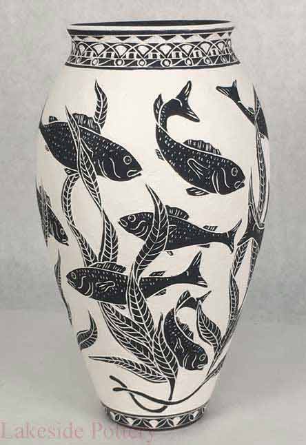 Fish Sgraffito technique, large vase
