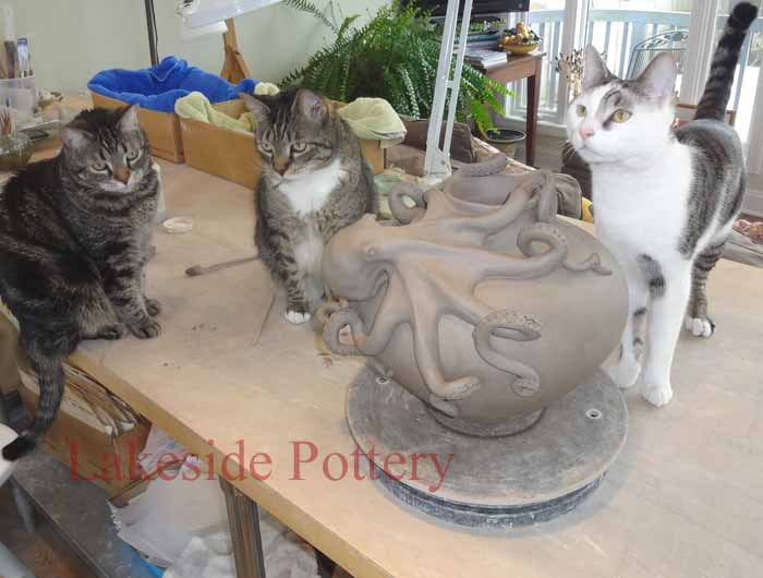 Octopus vase - hand-building advanced project (Cannoli, the cat, is great help) Click