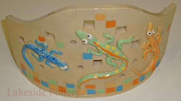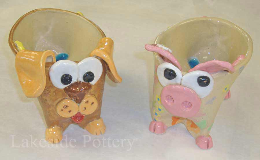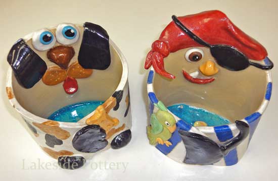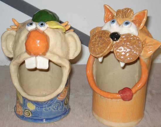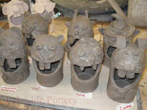 Below are some children clay project ideas designed for our pottery and ceramic art classes. The techniques used are: Slab, pinchpot, potter's wheel / handbuilding combination. We have over 100 distinct projects developed through the years to meet one of our most difficult goals which is: A child should not repeat a project even if they continue to take our programs for years. See related hand building lessons, how to, and more pictures links: Making Water Font Lesson, How to Make Coil Pot Tutorial, Making Clay Quilt Tutorial, Making Hedgehog Tutorial (Pinchpot) , Impressing Pattern on Clay, Making Clay Tile, Making Starfish and Sea Urchin, Hand Building Projects Ideas, More Pottery Tips