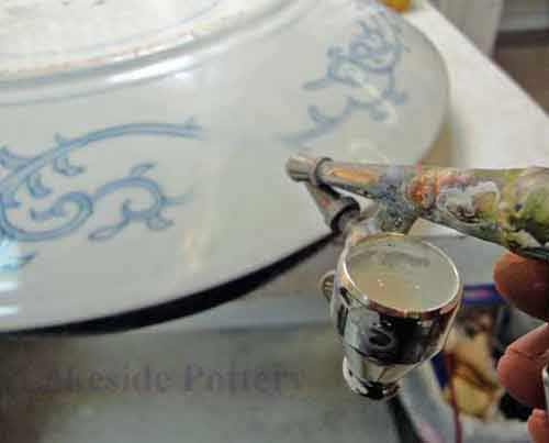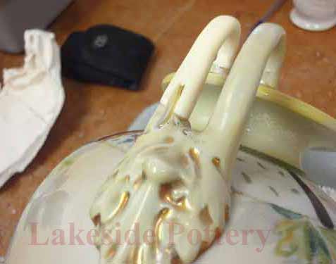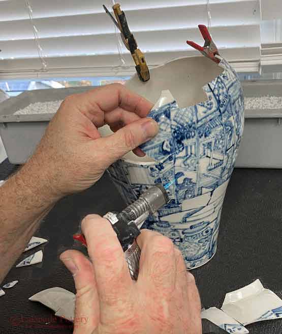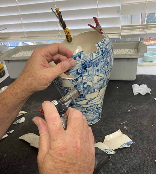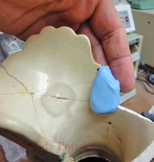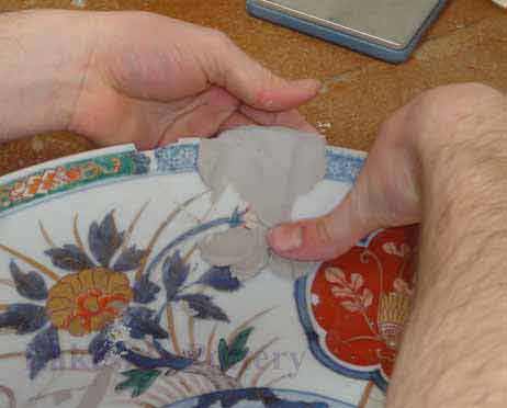 Mending a large ceramic platter