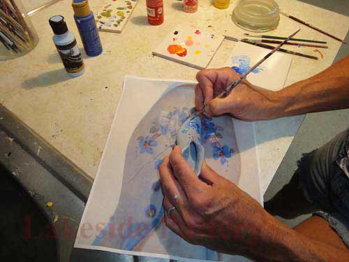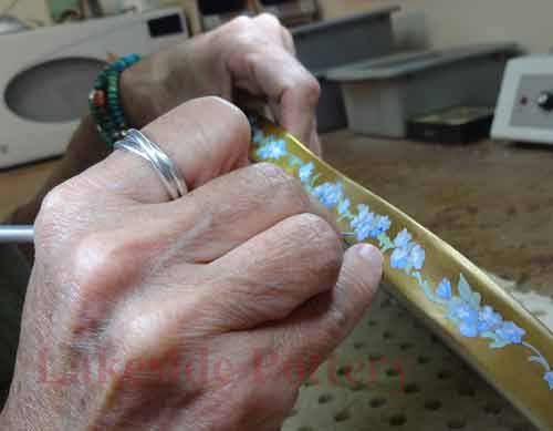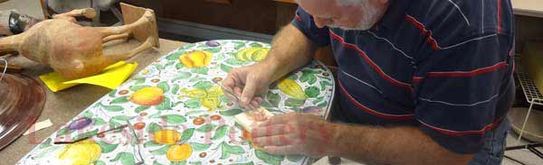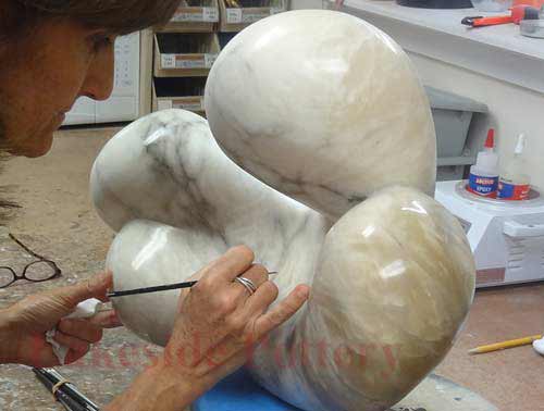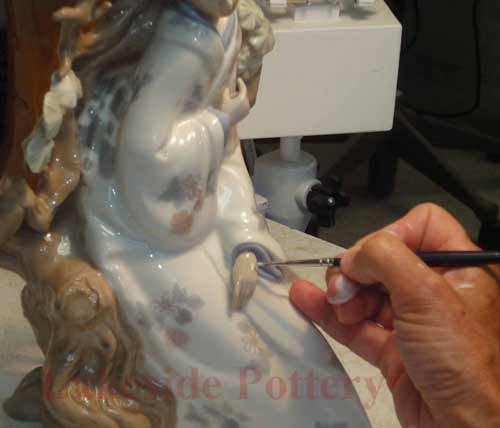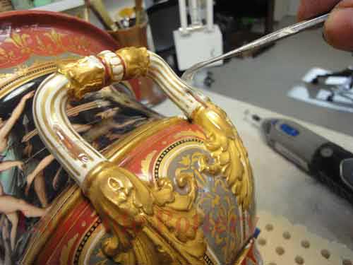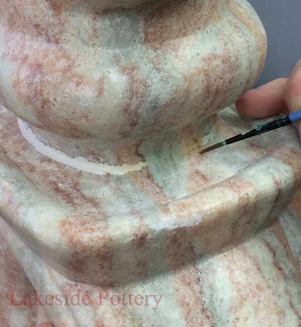 Painting the repaired area of antique Italian vase
