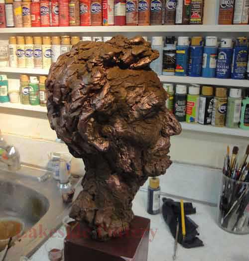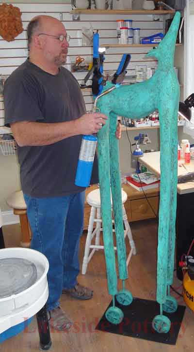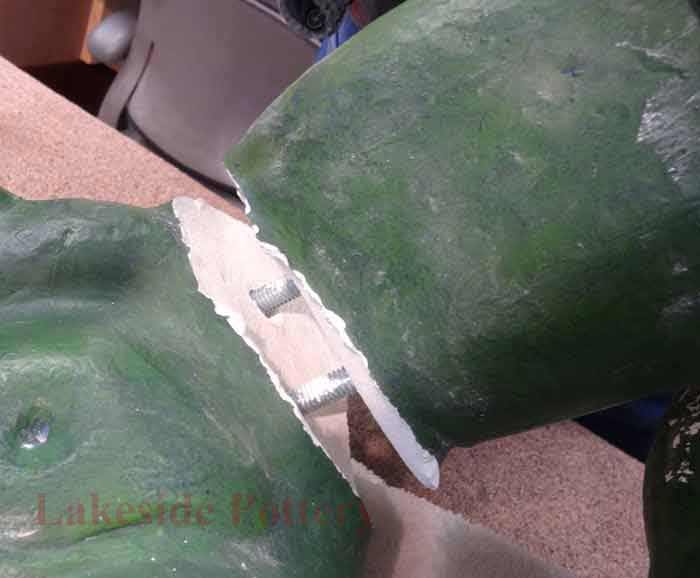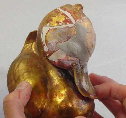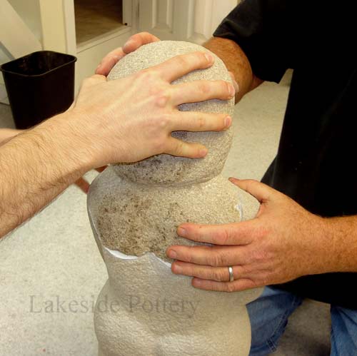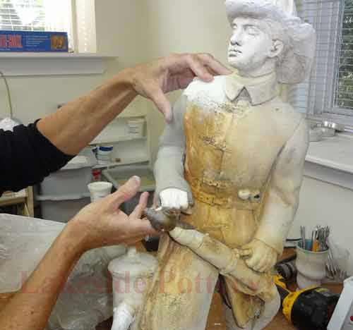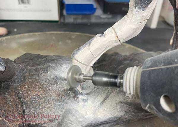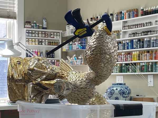Large Raku statue repair in process