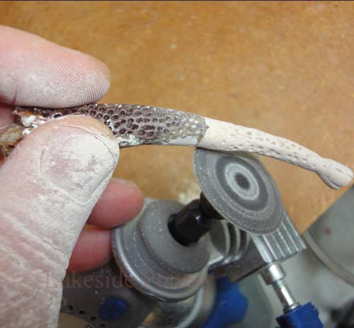 Grinding newly made leg into shape